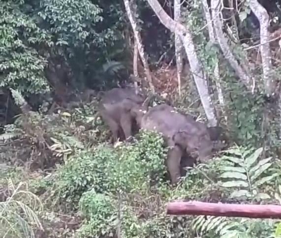 Kawanan gajah yang terpantau di kampung Bergang, Aceh Tengah. Foto: Dokumentasi warga.