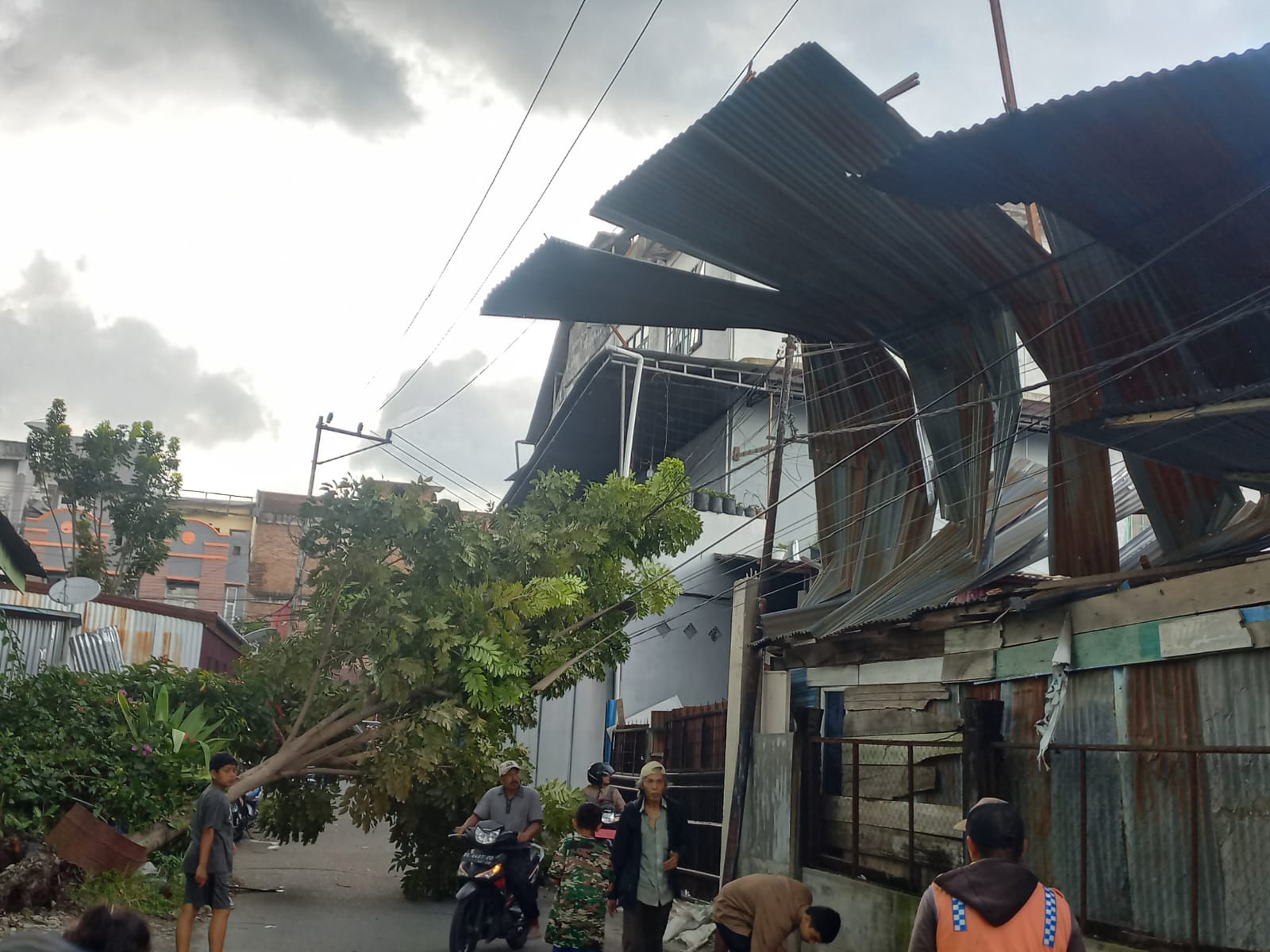 Beberapa bangunan rumah toko (ruko) di seputaran Pasar Inpres juga mengalami kerusakan sebagian atap sengnya.
