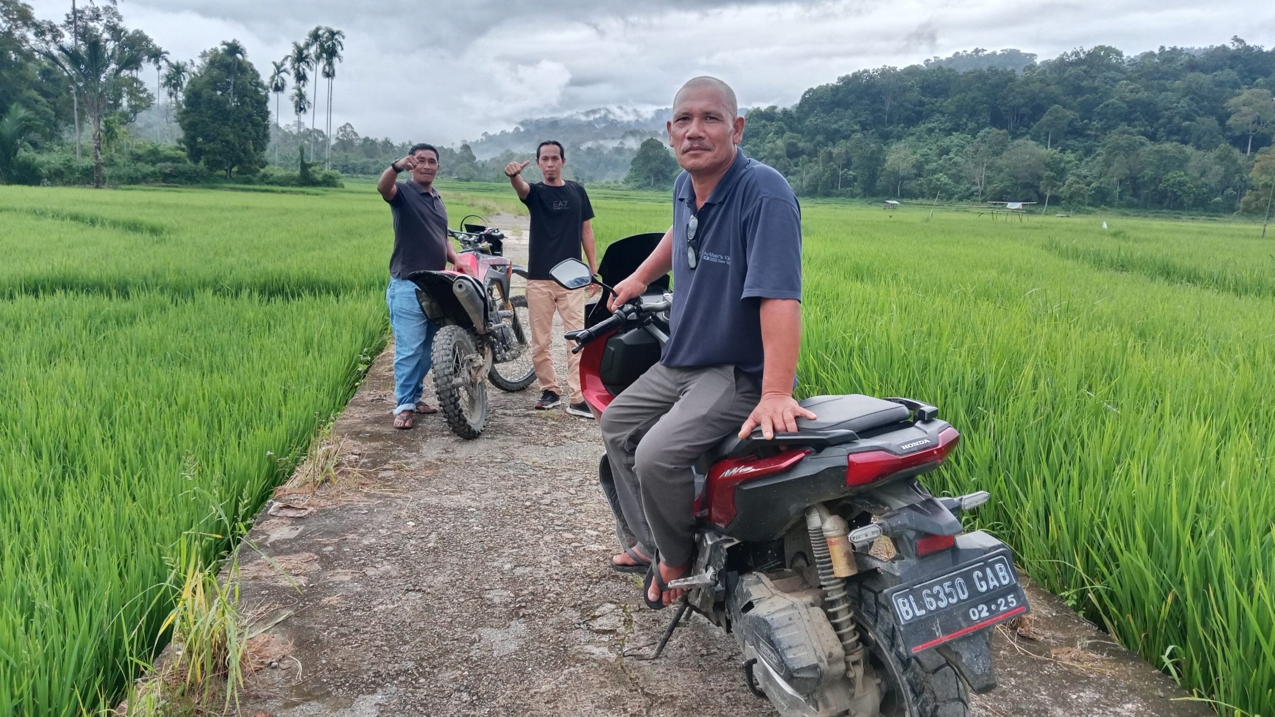 Masih terlihat aktivitas pagi warga yang berangkat ke kebun atau areal sawah, mereka berangkat dengan membawa perlengkapan kerja.
