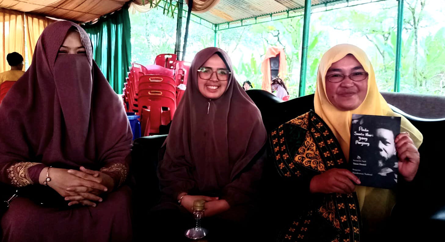 Teri Enda Wahyuni (kanan) menerima bingkisan buku puisi dari penyair Jakarta, Tatan Daniel. Foto: Panitia Desember Kopi