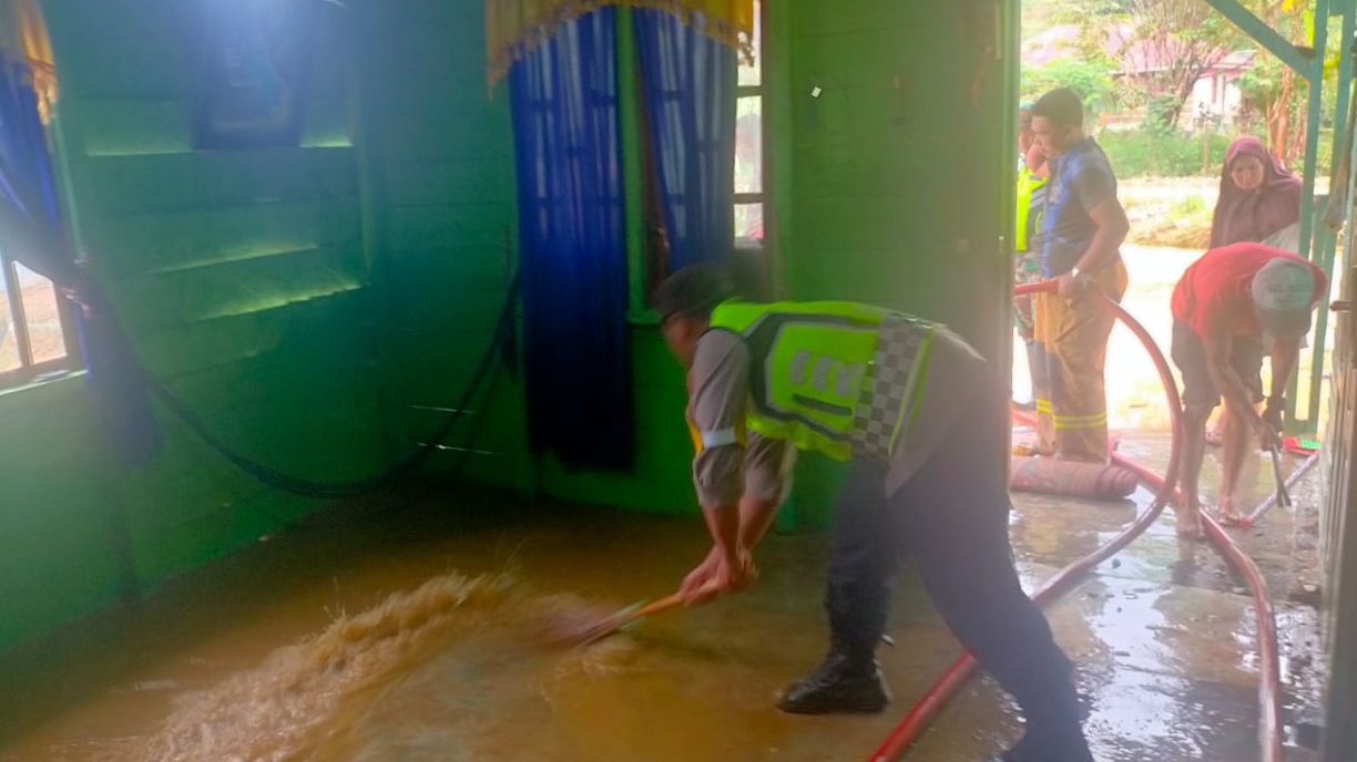 “Semoga dengan kegiatan gotong royong ini aktifitas masyarakat dapat kembali normal dan rumah warga yang terdampak banjir dapat segera bersih dan dapat dihuni kembali” ujar Ipda Denny.