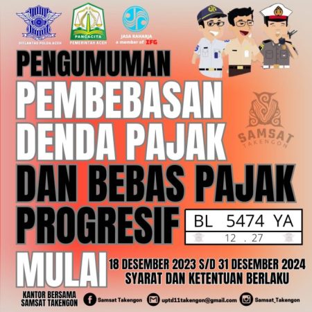 ACEH TENGAH, KenNews.is – Pemerintah Aceh mengeluarkan aturan terbaru terkait pembayaran Pajak Kendaraan Bermotor. Aturan itu dituangkan dalam Peraturan Gubernur Aceh nomor 40 Tahun 2023, Tentang Pembebasan Pajak Progresif Dan Penghapusan Denda Pajak Kendaraan Bermotor, yang akan diterapkan mulai 18 – 31 Desember 2023