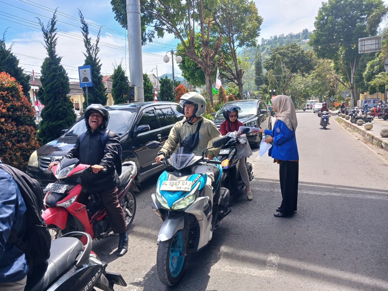 Dari pantauwan media ini disana para mahasiswa dalam melakukan deklarasi pemilu damai juga membagikan brosur ajakan mendukung penuh Pemilu 2024 pada masyarakat yang melintas. **