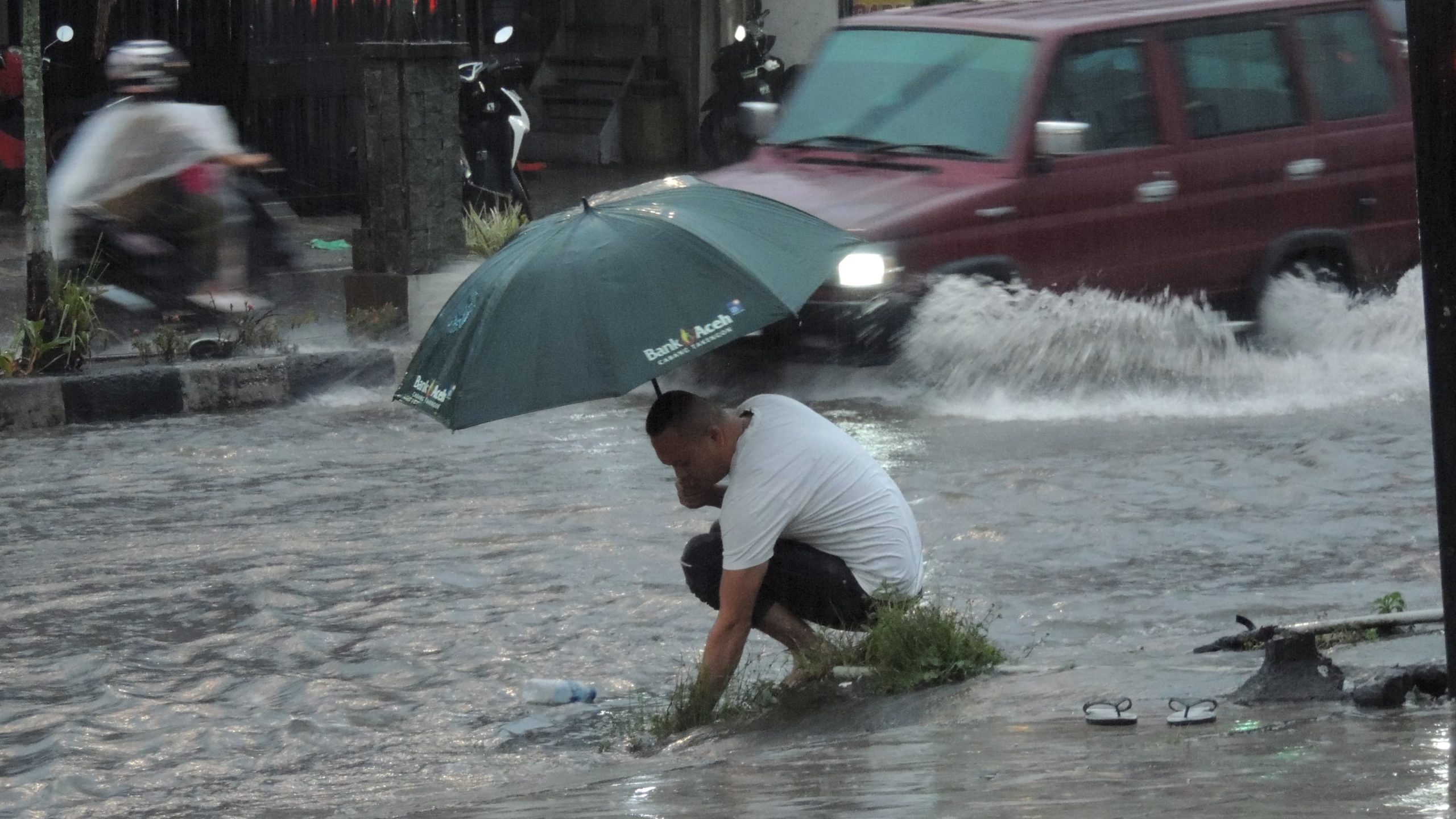 “Sepertinya ada sumbatan sampah sehingga air hujan tidak langsung bisa mengalir ke selokan, menyebabkan meluapnya air ke badan jalan,” terang Dedi