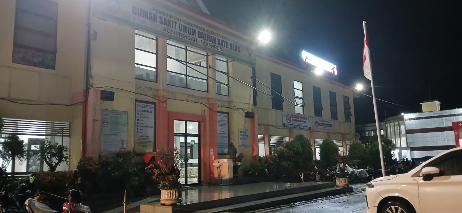 TAKENGON, KenNews.id – Kanopi luar Gedung Poli Rumah Sakit Umum Daerah Datu Beru Takengon, Aceh Tengah Roboh.