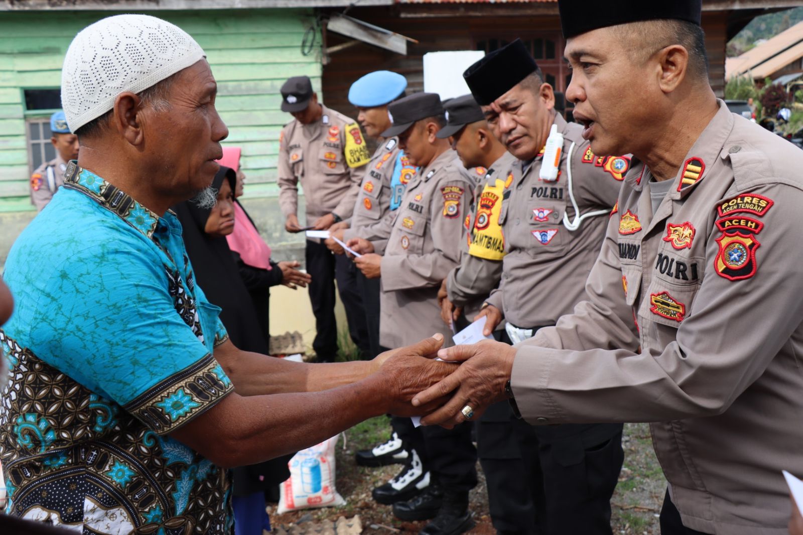 Kegiatan itu di pimpin oleh Kapolres Aceh Tengah Akbp Dody Indra Eka Putra,S.I.K,M.H, diwakili Kabag Ops Akp Rafliandi bersama Pju dan Kapolsek Bebesen, menyalurkan 20 paket sembako kepada warga masyarakat kurang mampu yg membutuhkan.