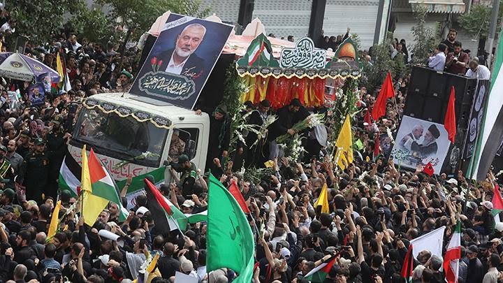 Warga Iran menghadiri prosesi pemakaman ketua Hamas yang terbunuh, Ismail Haniyeh di Teheran, Iran, 1 Agustus 2024. Majid Asgaripour/WANA (West Asia News Agency) via REUTERS