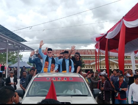 Dalam perjalanan ke KIP, massa teriakan yel yel, “Hidup Tagar”, “Hidup Tagore – Armia”, “Tagore Bupati”, “Oke Gas, Oke Gas, Tagar Bupati kami”.