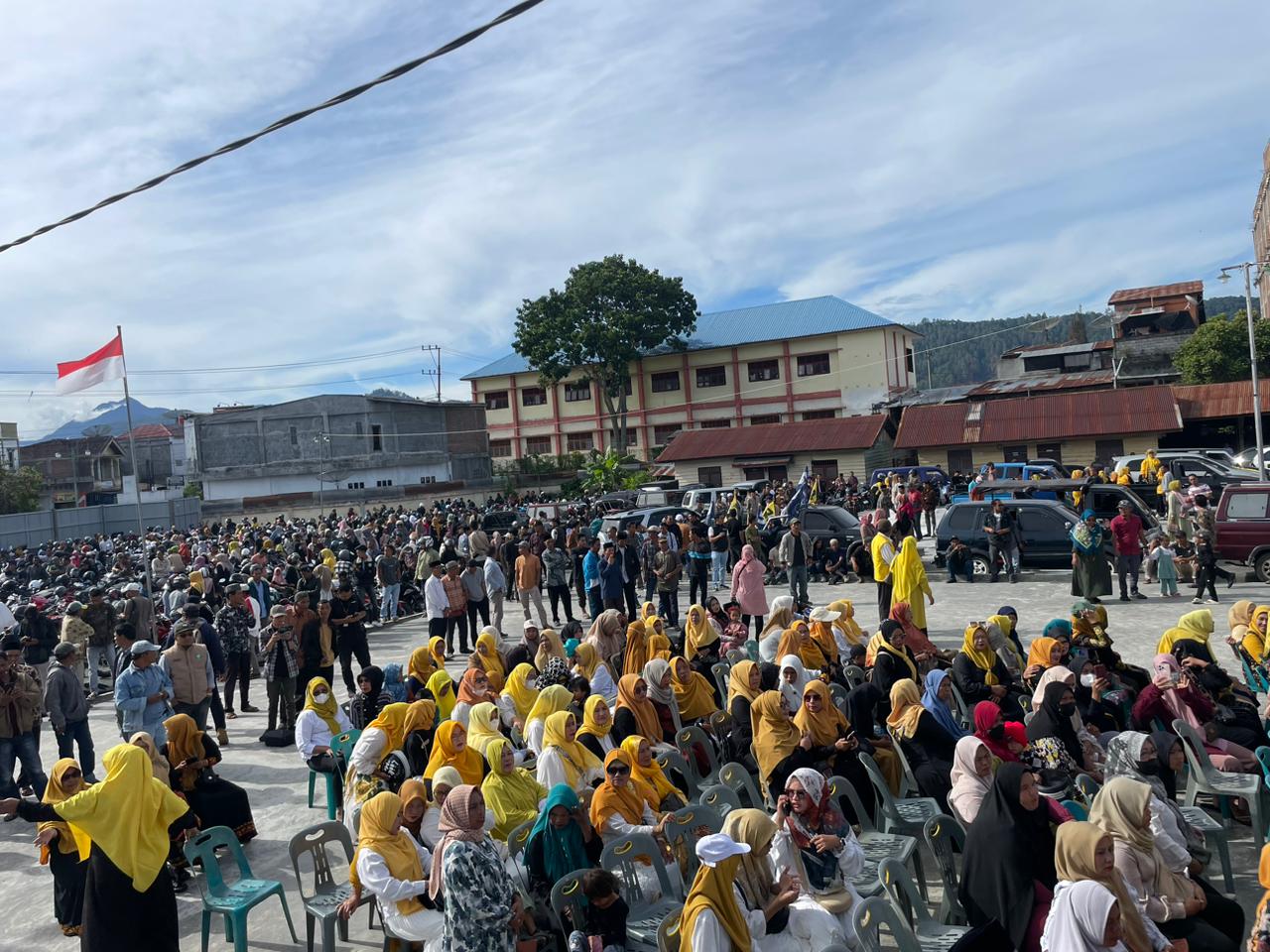 TAKENGON, KenNews.id – Ribuan massa pendukung pasangan Bakal Calon Bupati dan Wakil Bupati Aceh Tengah, Haili Yoga dan Muchsin Hasan terlihat telah datang di lokasi deklarasi dan titik kumpul sebelum pendaftaran ke kantor KIP di Gudang H Irham, Simpang Empat, Takengon