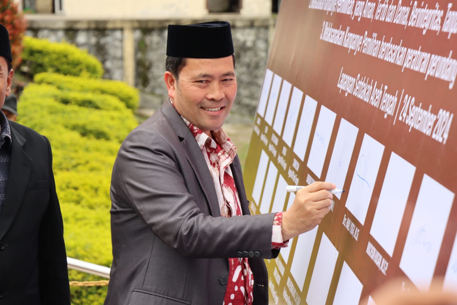 Usai Sambutan, dilanjutakan dengan penandatangan Deklarasi kampanye damai oleh kelima pasangan Calon Bupati dan wakil Bupati, Partai Pendukung serta Unsur Perkompida Aceh Tengah.