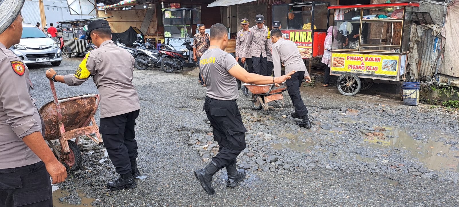 TNI-Polri di Aceh Tengah Gotong Royong Tambal Jalan Berlubang Dan Pembersihan Drainase