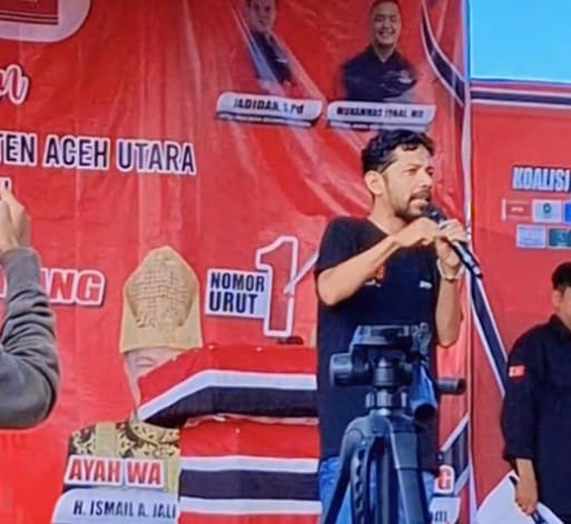 “Disini saya juga ingin menyampaikan bahwa kita dalam pemenangan ini sangat banyak sayap dan perbedaan, silakan itu tidak bermasalah, tapi disini saya berharap tolong perbedaan itu jangan sampai membuat kita terpecah belah, Muallem – Dek Fadh Gubernur Aceh” Pinta Apache dalam orasinya sebelum melantunkan tembang lagu yang pernah viral dikalangan anak muda aceh beberapa waktu lalu (Bek Panik).
