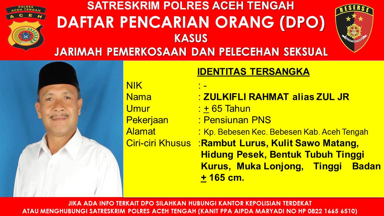 Selebaran DPO Zulkifli Rahmat yang diterbitkan oleh Polres Aceh Tengah