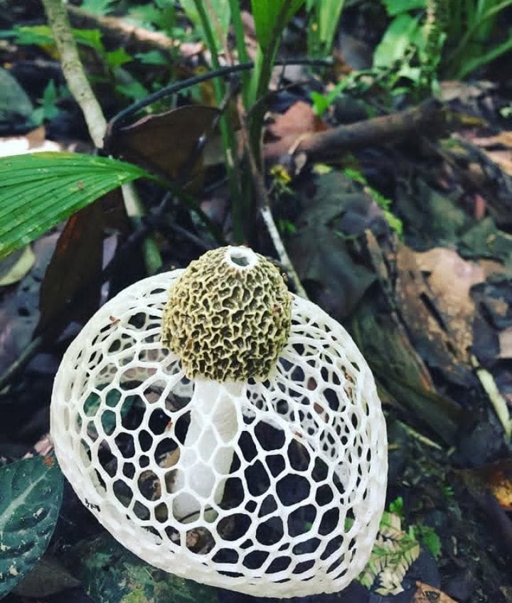 Jamur tudung pengantin atau bridal veil stinkhorn (Phallus indusiatus) merupakan salah satu jamur berbau bangkai dengan tampilan yang unik.