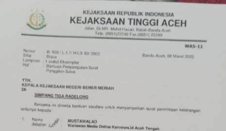 Baca juga: Penanggungjawab KenNews.id Dipanggil Kejati Aceh Terkait Pemberitaan Life Skill
