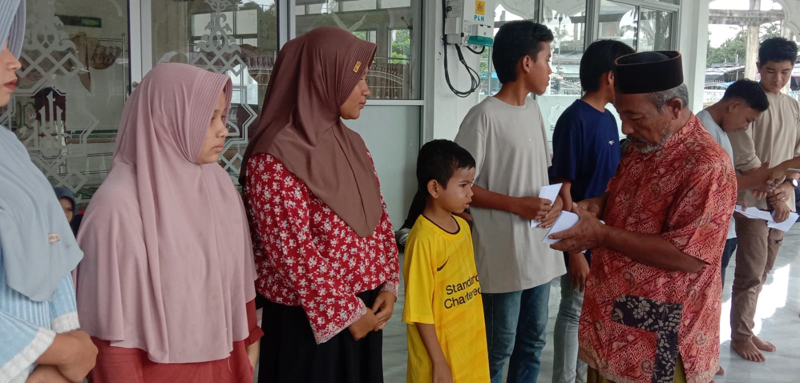 Secara simbolis santunan yatim/piatu diserahkan oleh Teungku Abu Baharuddin salah seorang tokoh agama setempat, yang kemudian dilanjutkan oleh Camat Geureudong Pase Mardani, S.Sos, Perwakilan Polsek Ismail Saleh, dan beberapa orang Geuchik.