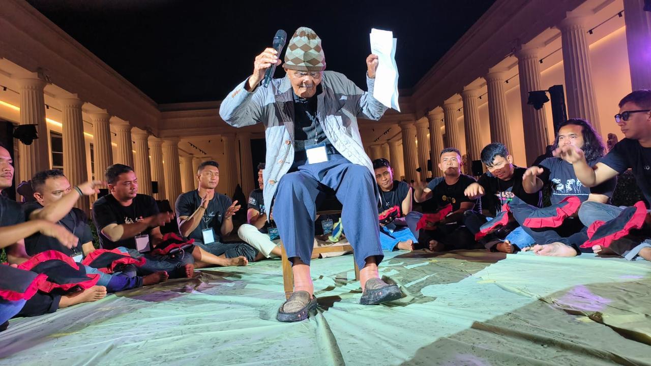 2. Penampilan ini berlangsung di halaman terbuka Museum Nasional, Jakarta, dalam rangka acara Panggung Maestro 2025. Para maestro didong tampil di antara arca-arca kuno yang menyimpan jejak berbagai kebudayaan Nusantara.