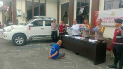 Kapolres Aceh Tengah, Dody Indra Eka Putra, menunjukkan pelaku dan barang bukti hasil curian. Foto:…