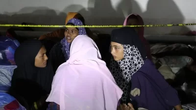Pengungsi Rohingya menempati penampungan sementara di llanta pasar gedung Balee Meuseuraya Aceh (BMA), Banda Aceh,…